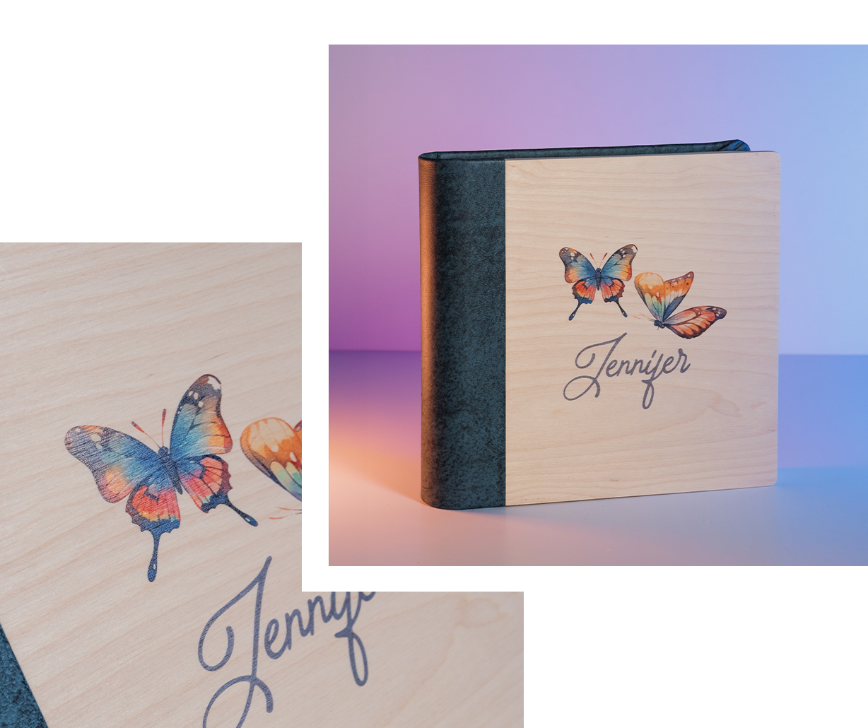 La colección Nature tiene su base en la composición de su cubierta de madera que puede variar entre colores claros y oscuros, de diferentes tonos orgánicos. La selección del revestimiento y el uso de las personalizaciones del fotógrafo, con el uso del grabado láser y la impresión UV, abre innumerables posibilidades para la creatividad. En DreambooksPro cada portada es hecha individualmente a través de un proceso manual y trabajada por artesanos experimentados, dándole así carácter y detalle.